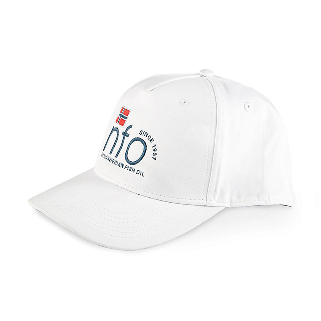 Классическая белая кепка универсального размера (one size) с логотипом NFO из дышащего материала.