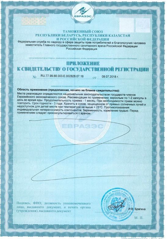 Рекомендации по применению: Взрослым 1-2 капсулы в день во время еды.
