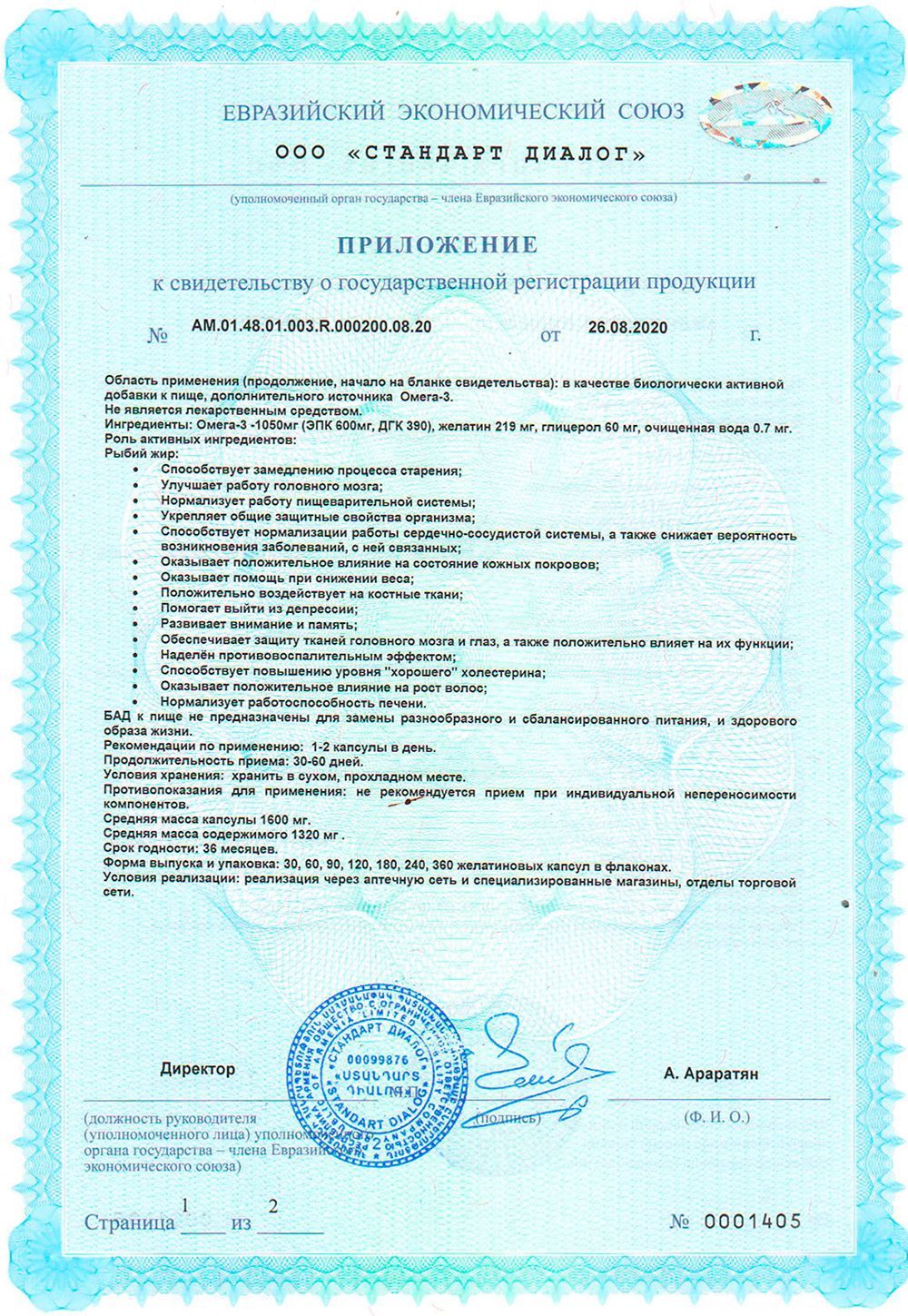 Эйкозапентаеновая кислота (ЭПК) – стимулирует регенерацию клеточных мембран, нормализует механизмы транспорта липидов по кровяному руслу, активизирует иммунитет, улучшает абсорбцию жиров в пищеварительном тракте, повышает антиоксидантные функции организма.
