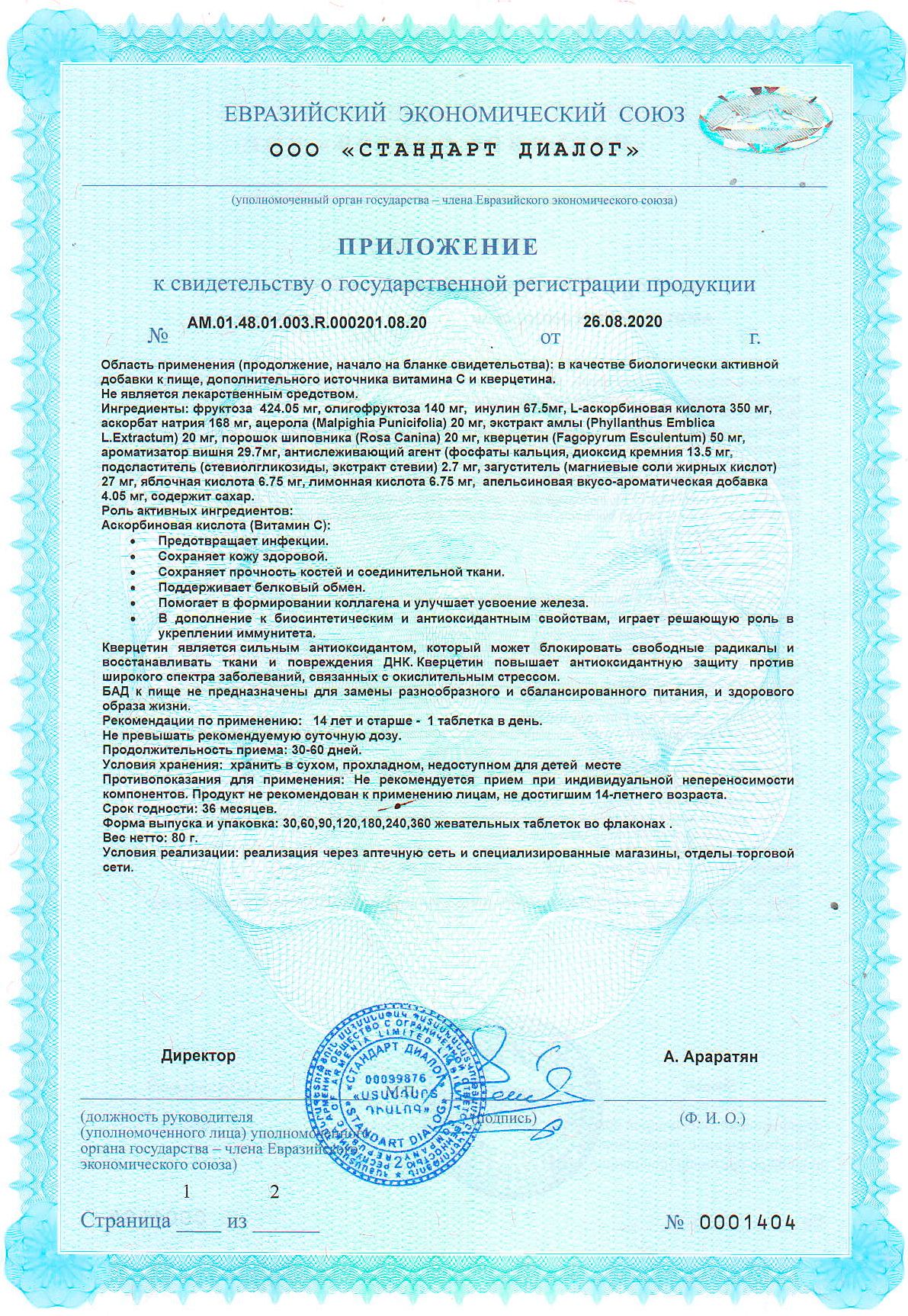 В составе аскорбат натрия и L-аскорбиновая кислота из растительных экстрактов Амлы, Ацеролы и Шиповника